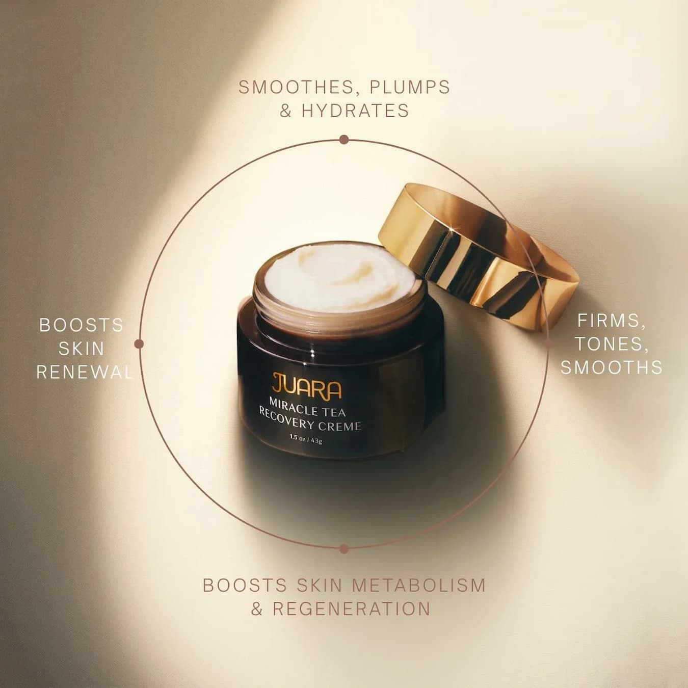 The Miracle Tea Recovery Creme from JUARA is formulated to support the skin throughout all of life’s transitions.