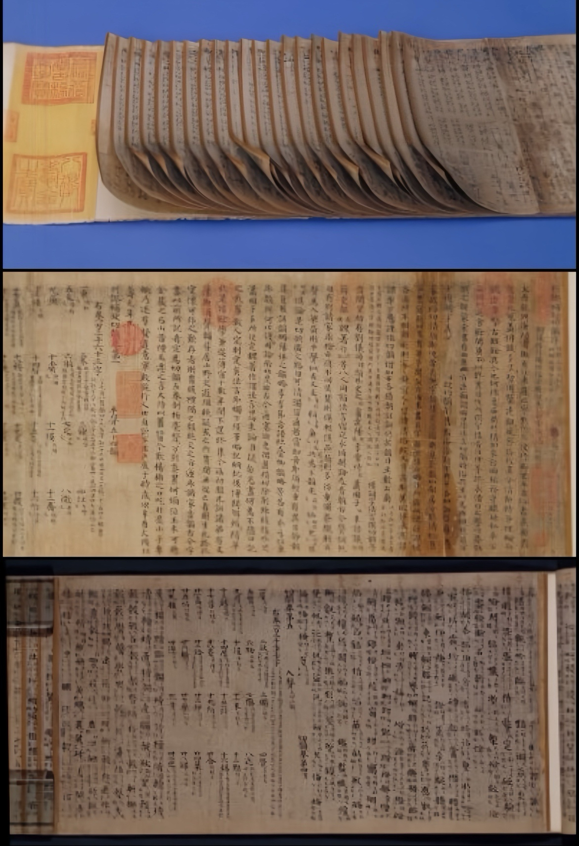 This craftsmanship represents an intermediate form between the scroll and the codex, merging function with ritual beauty. The only surviving ancient artifact of this kind is preserved in the Forbidden City in Beijing. The making of a dragon-scale scroll involves more than ten meticulous steps — printing, cutting, folding, mounting, and rolling — all performed entirely by hand with precise attention to alignment and tension. Recognized as a form of intangible cultural heritage, it remains one of the rarest bookbinding techniques in Chinese history.