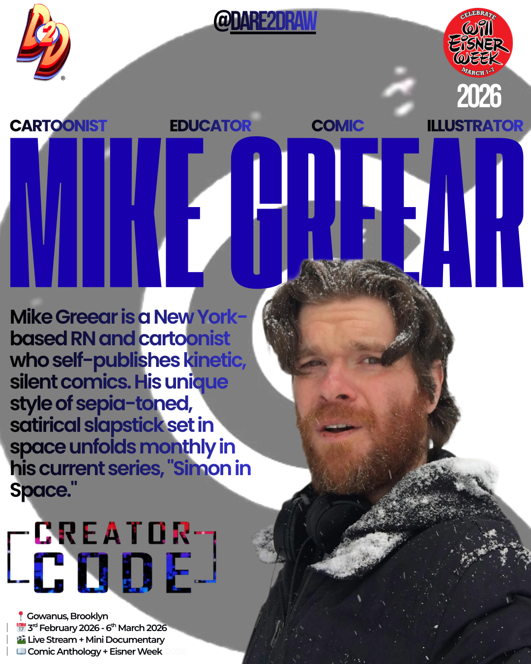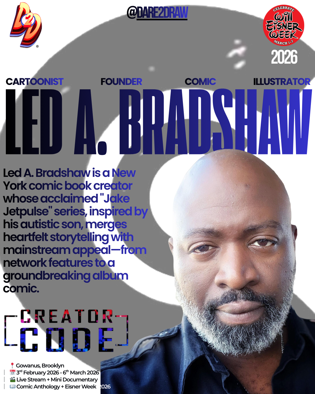 The residency is scheduled to culminate during Will Eisner Week 2026 (March 1-7). The documented process will be used to produce a special mini-documentary celebrating the legacy of Brooklyn-born comics pioneer Will Eisner, graphic novel literacy, and free speech in sequential arts.